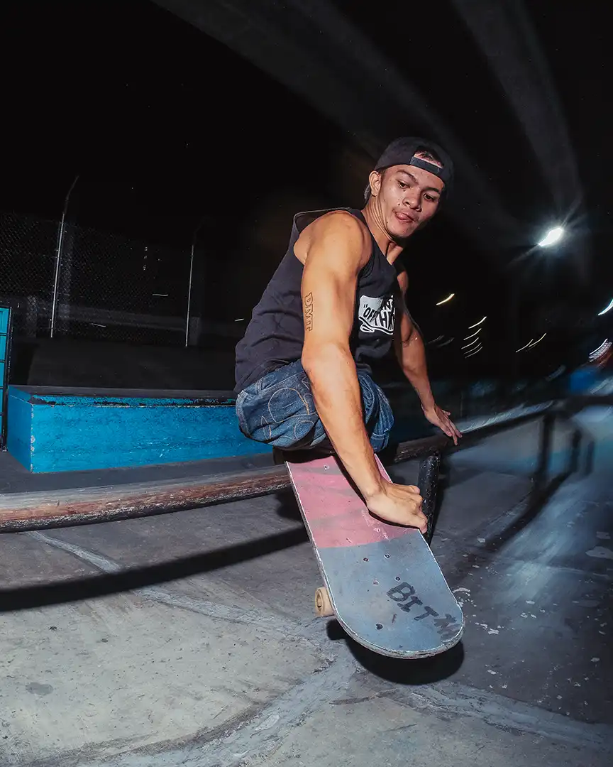 He lights up when talking about watching skaters like Jerry Santillan and Margielyn Didal on his phone years ago. Now they’re part of the world he exists in. And on tough days, skating becomes more than a hobby. It becomes therapy.